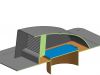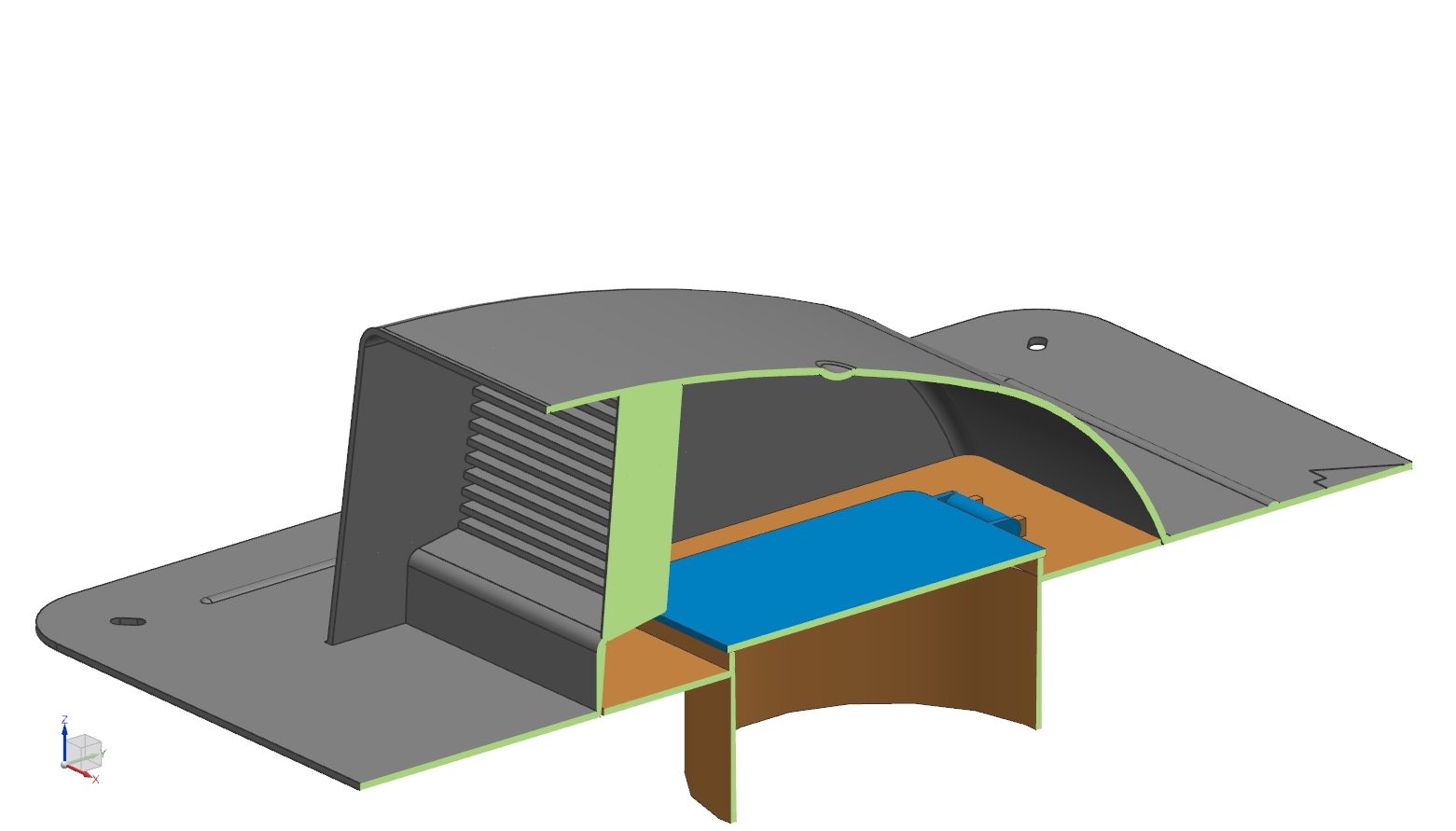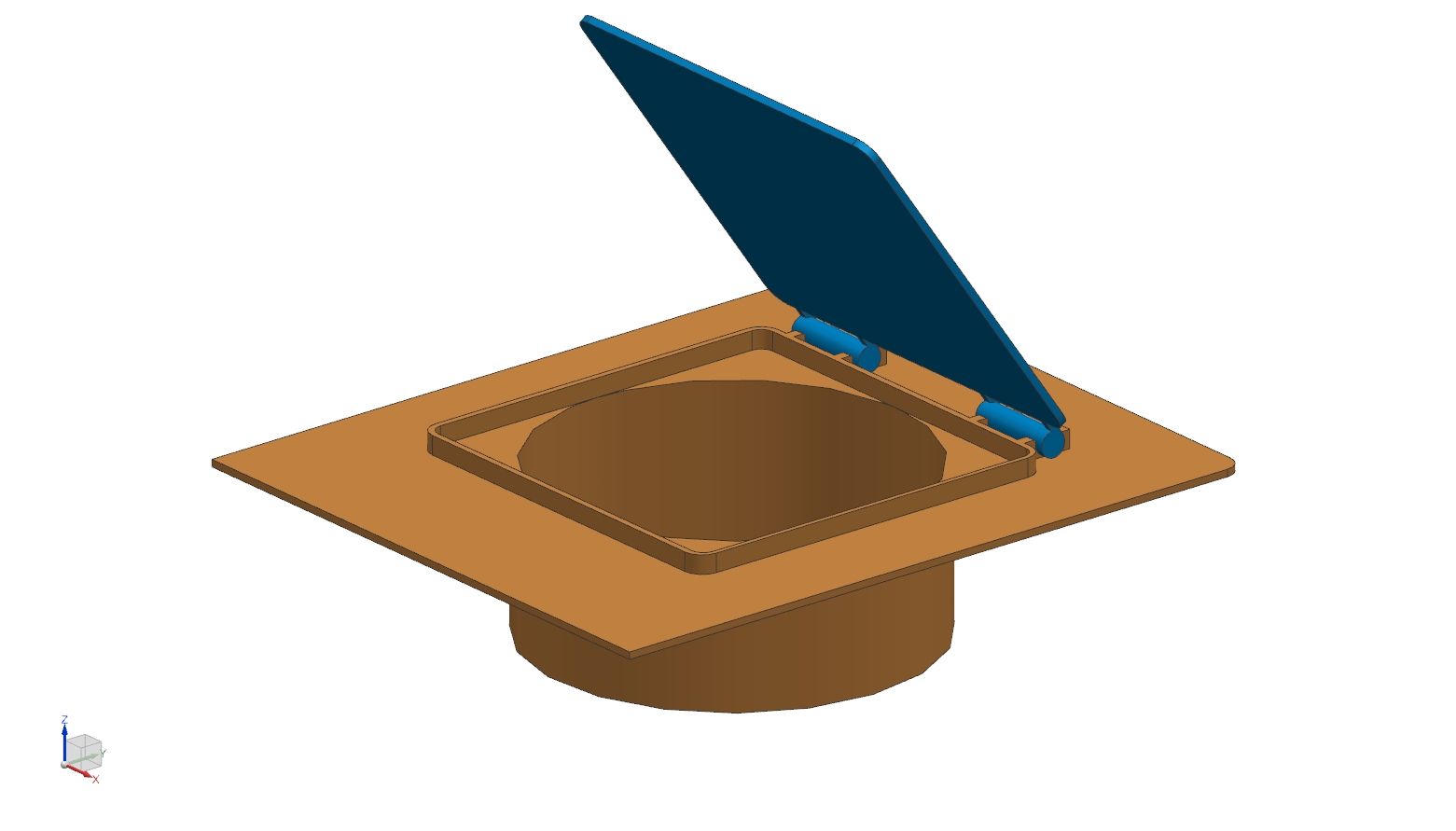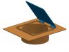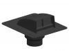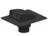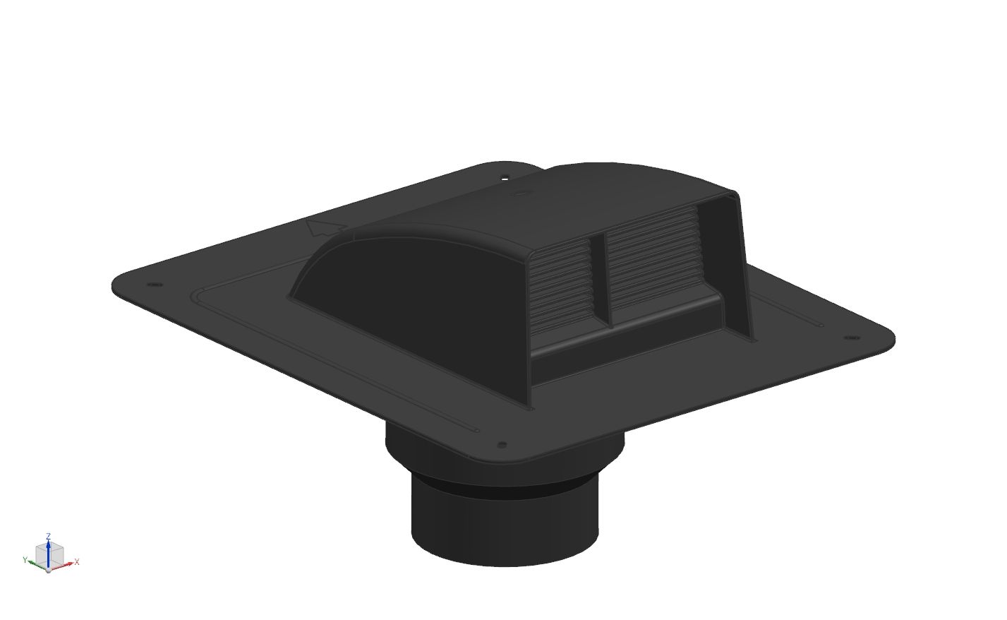 Installed on a sloped, shingled roof to exhaust bathroom fans by the means of a roof opening. Includes internal damper to reduce backdraft and an exterior grill to prevent the infiltration and nesting of birds, vermin and insects.